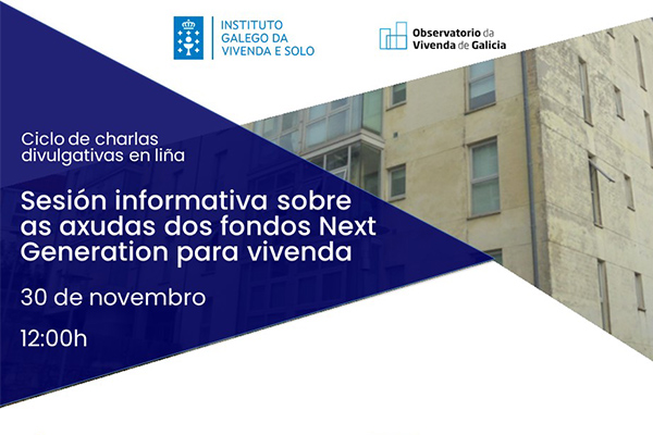 Sesión informativa sobre as axudas dos fondos Next Generation para vivenda. En liña. 30.11.2021. 30 Nov